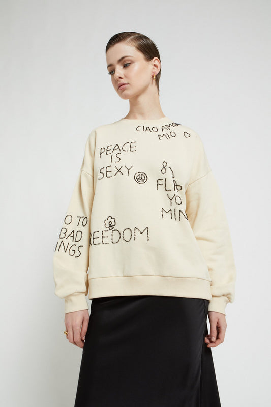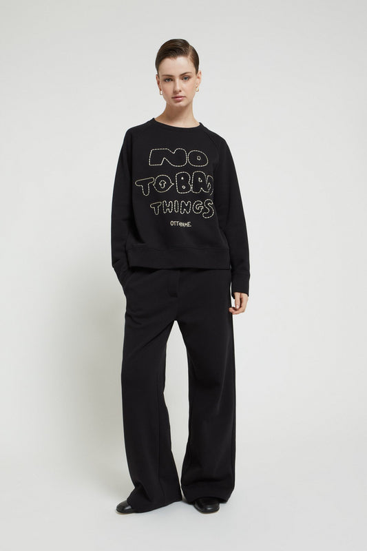 Pure cotton sweatshirt with slogan and sequin embroidery