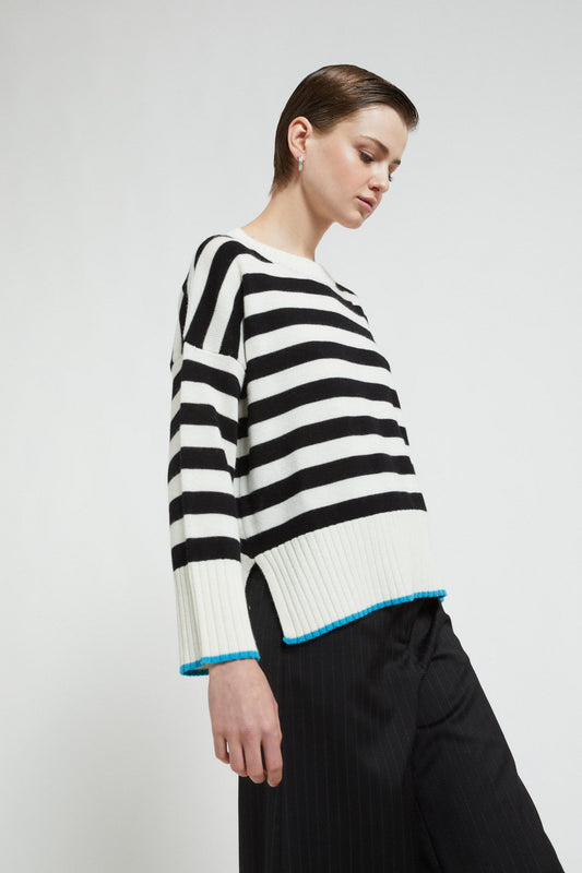 Cropped wool blend sweater with V-neckline and contrasting edges