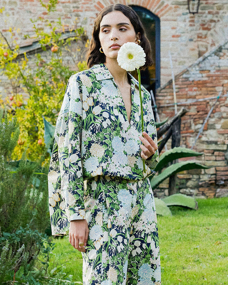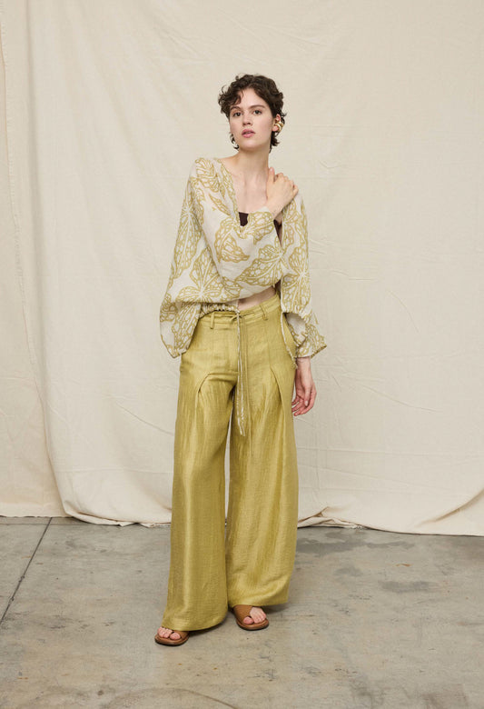 Leaf Print Cropped Wrap Blouse