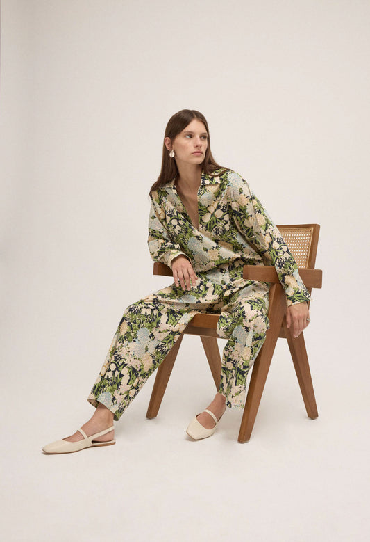 Trousers with leaf print