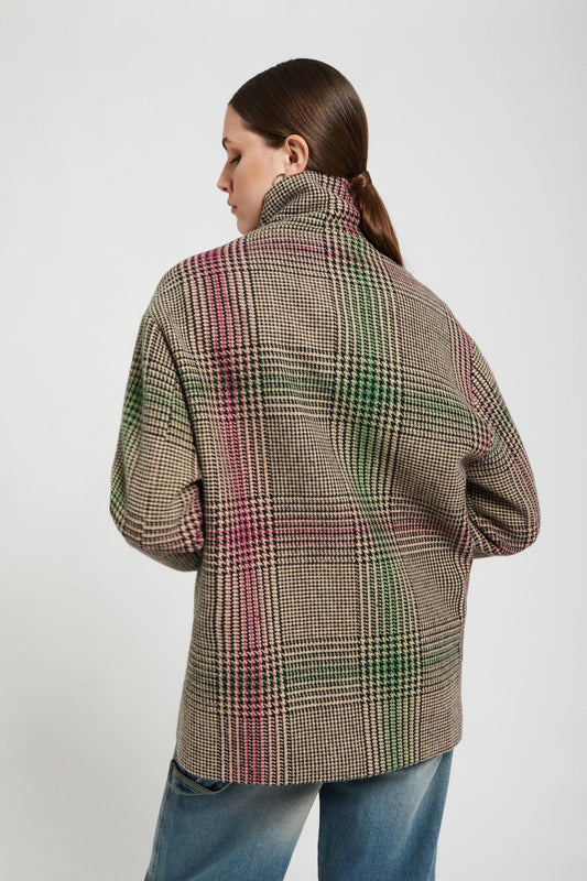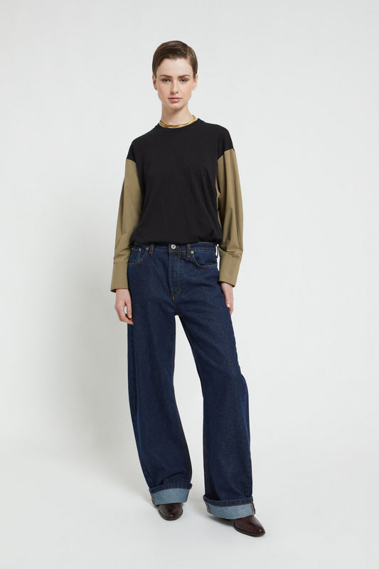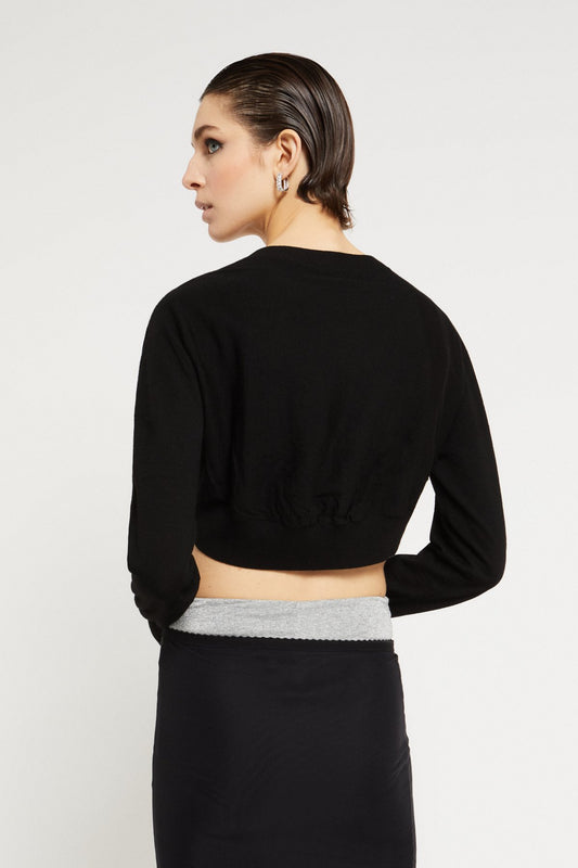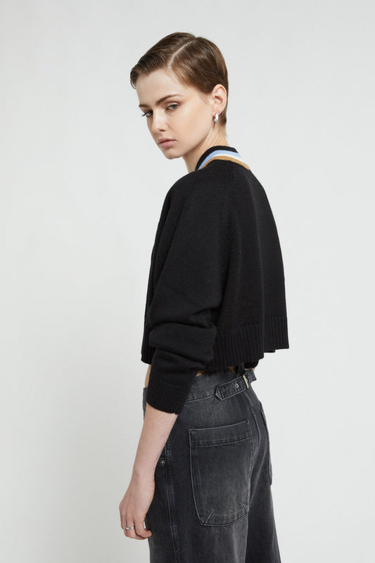 Cropped wool blend sweater with V-neckline and contrasting edges