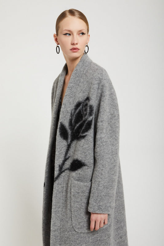 Oversized cardigan in cotton sweatshirt fabric with embroidery and buttons